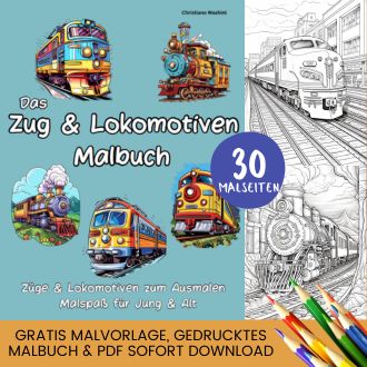 Unser Lok-Malbuch ist nicht nur ein großartiges Geschenk für Eisenbahnliebhaber, sondern auch ein perfektes Werkzeug zur Entspannung und zum Erlernen der Geschichte und Technik hinter diesen beeindruckenden Maschinen. Tauche ein in die Welt der Schienen und lass Deiner Kreativität freien Lauf!